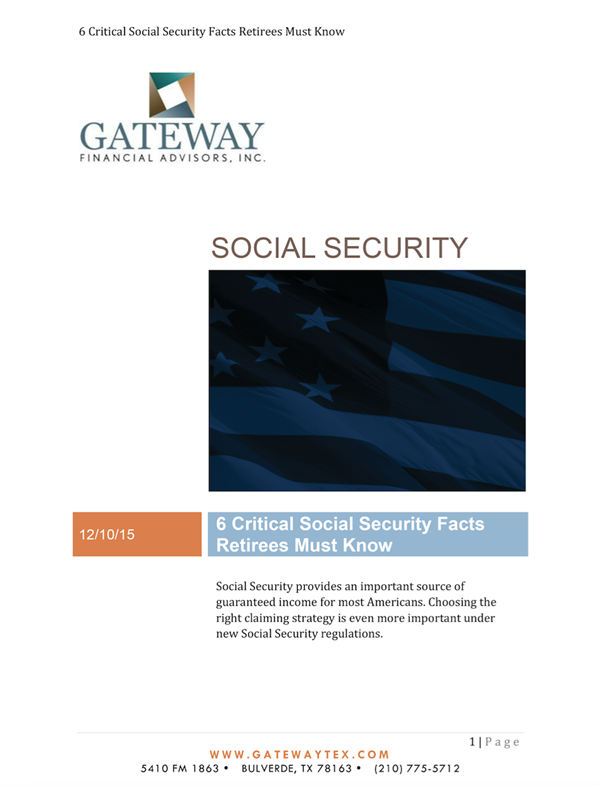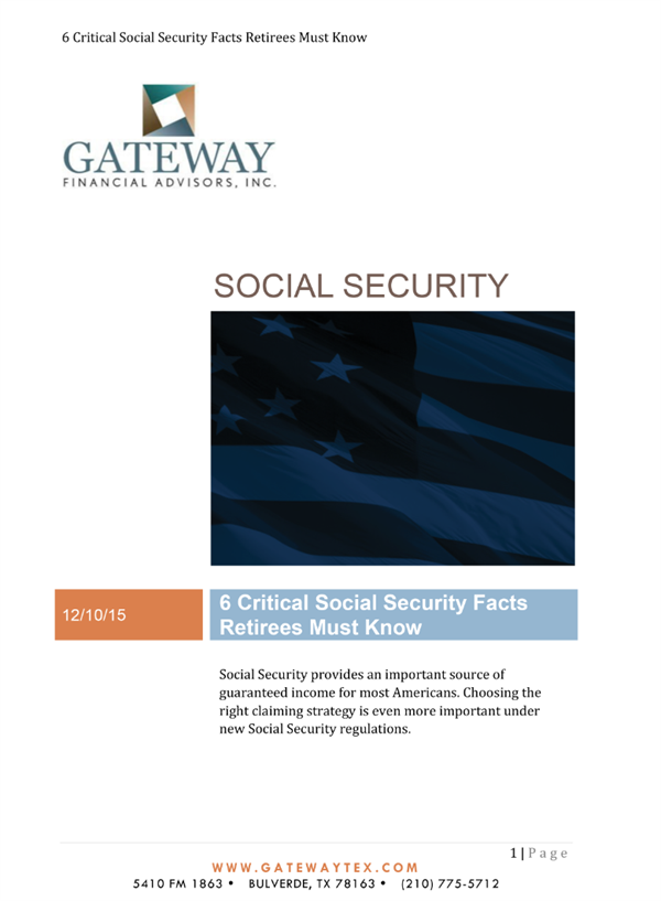 5 things Retirees Need to Know about Social Security Benefits6 Critical Social Security Facts2016 Tax Planning
